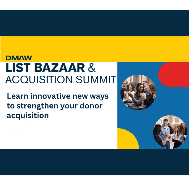 Find the Best Acquisition Data Strategy at 2026 List Bazaar and Acquisition Summit Back to Blog April 15, 2026 By Margaret Romig I think we can all agree that donor acquisition feels pretty complicated right now. So many factors are at play that make prospecting a challenge: the economy, world events, tight organization budgets,…